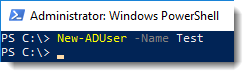 New-AdUser -Name TestNo news is good news. The command seems to have completed without error, so let’s go check out our new user object in Active Directory.
