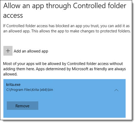 The downside to using the Windows Defender Security Center GUI to manage applications, is the fact that it forces you to browse for a single executable. This would be where PowerShell and Group Policy could prove useful. Scripting or automating management of Controlled Folder Access sounds significantly less cumbersome than browsing to each file on each machine