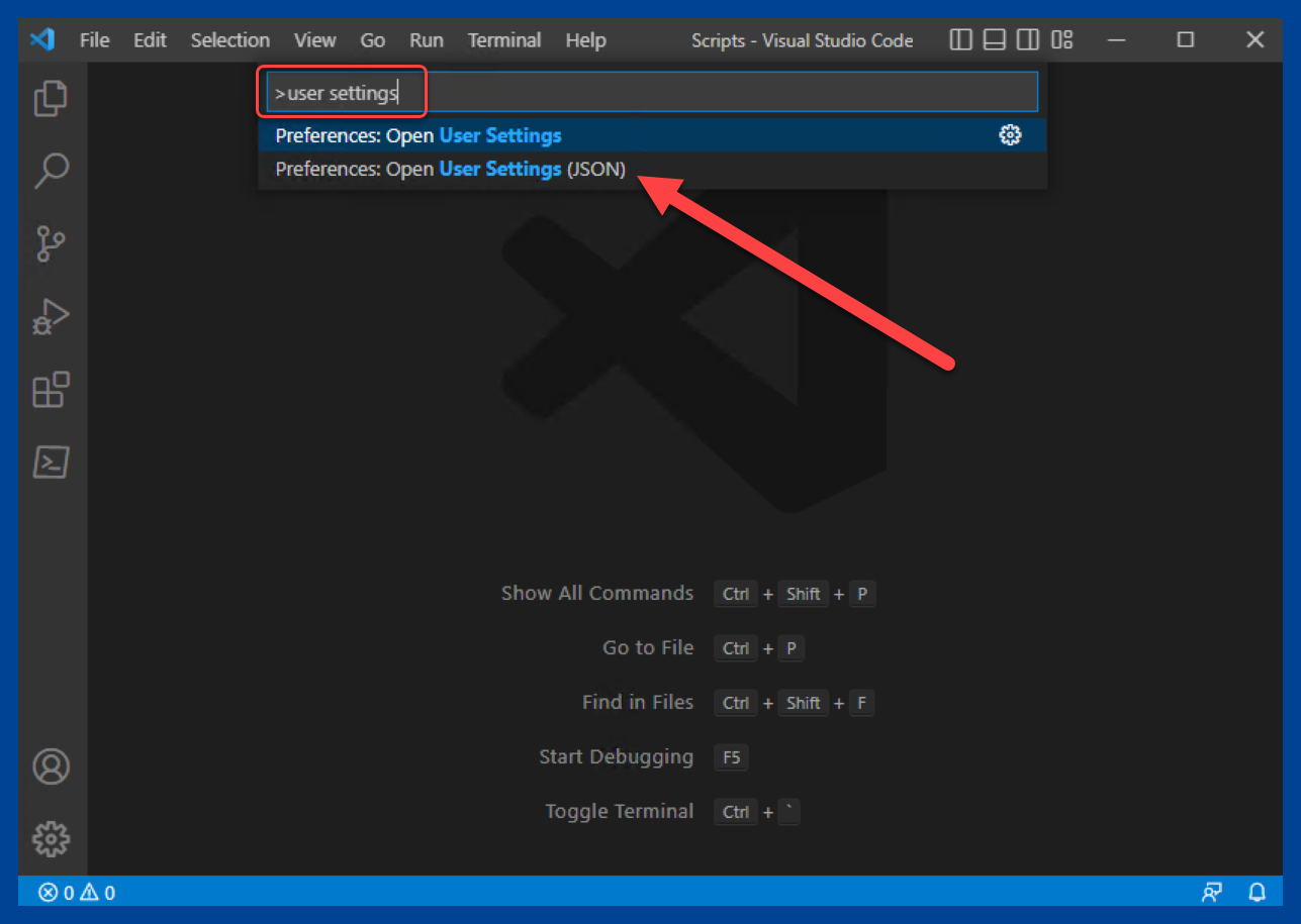 Click Preferences: Open User Settings (JSON).