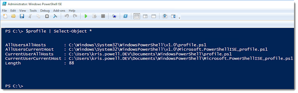 With all of our profiles created, all that is left is to close and reopen our PowerShell ISE window so that it can load all of our profiles. (In the case of PowerShell ISE, you could just open up a new PowerShell Tab, but why? Restarting the ISE is just as lovely.)