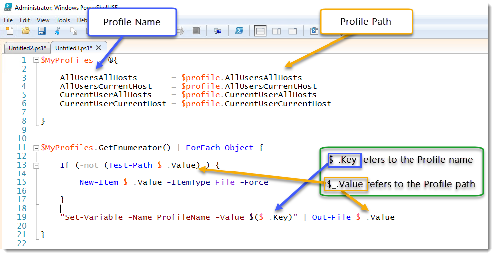 $MyProfiles.GetEnumerator() | ForEach-Object {