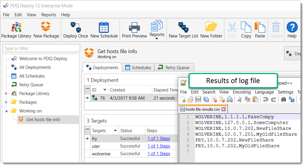 Like magic, you can now deploy to all your targets and save your results to a log file on some UNC path. Go you!