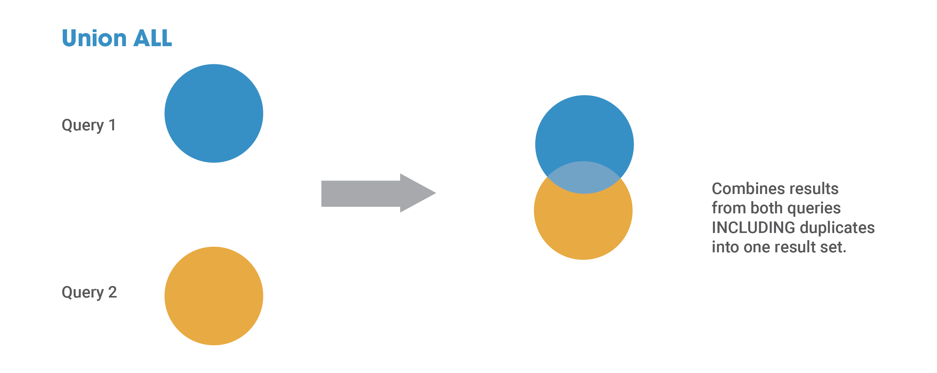The same protocols listed in the UNION vs. UNION ALL blog must also be followed using SQL set operators: