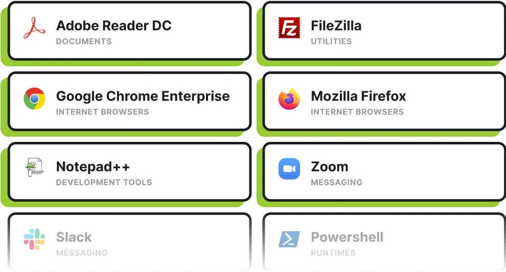 PDQ maintains the latest versions of hundreds of popular third-party apps — making patching fast, silent, and hands-free.